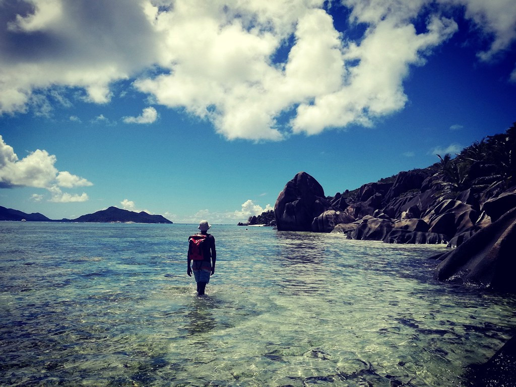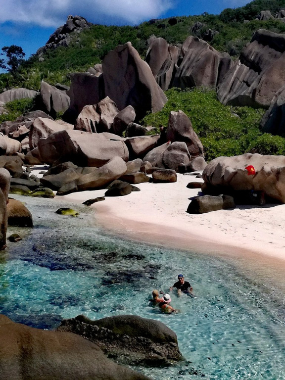 Otok La Digue: spimo med središčem dogajanja in prvo plažo, tako da tudi tisti, ki ne boste najeli kolesa, lahko peš pridete do osvežitve. Sicer pa se otok odkriva na kolesih (ali s taksijem) in peš. Poleg plaž, kot so Source d"Argent in Anse Cocos, pa je morda kar najlepše doživetje Sejšelov treking do plaže Anse Marron. Na otoku je predvsem zelo veliko koles in zelo veliko divjih, rajskih plaž.