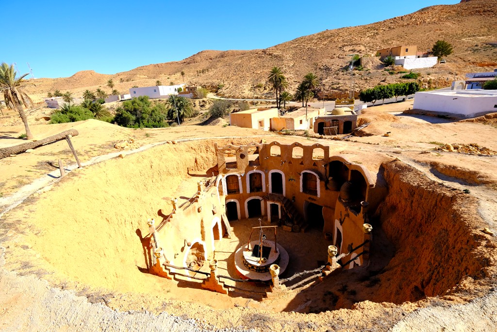 Jutranji vodeni sprehod po medini v Sfaxu (funduq kovačev, tržnica Bab Jebli, medina in suki). Nato zapustimo mediteranski del Tunizije in se spustimo v notranjost, na popolnoma drug planet. Tu nas čakajo oaze in puščavna pokrajina. Sprehodimo se po fascinantnem mestecu Matmata, med kraterskimi hišami in tudi prenočimo v kraterju.