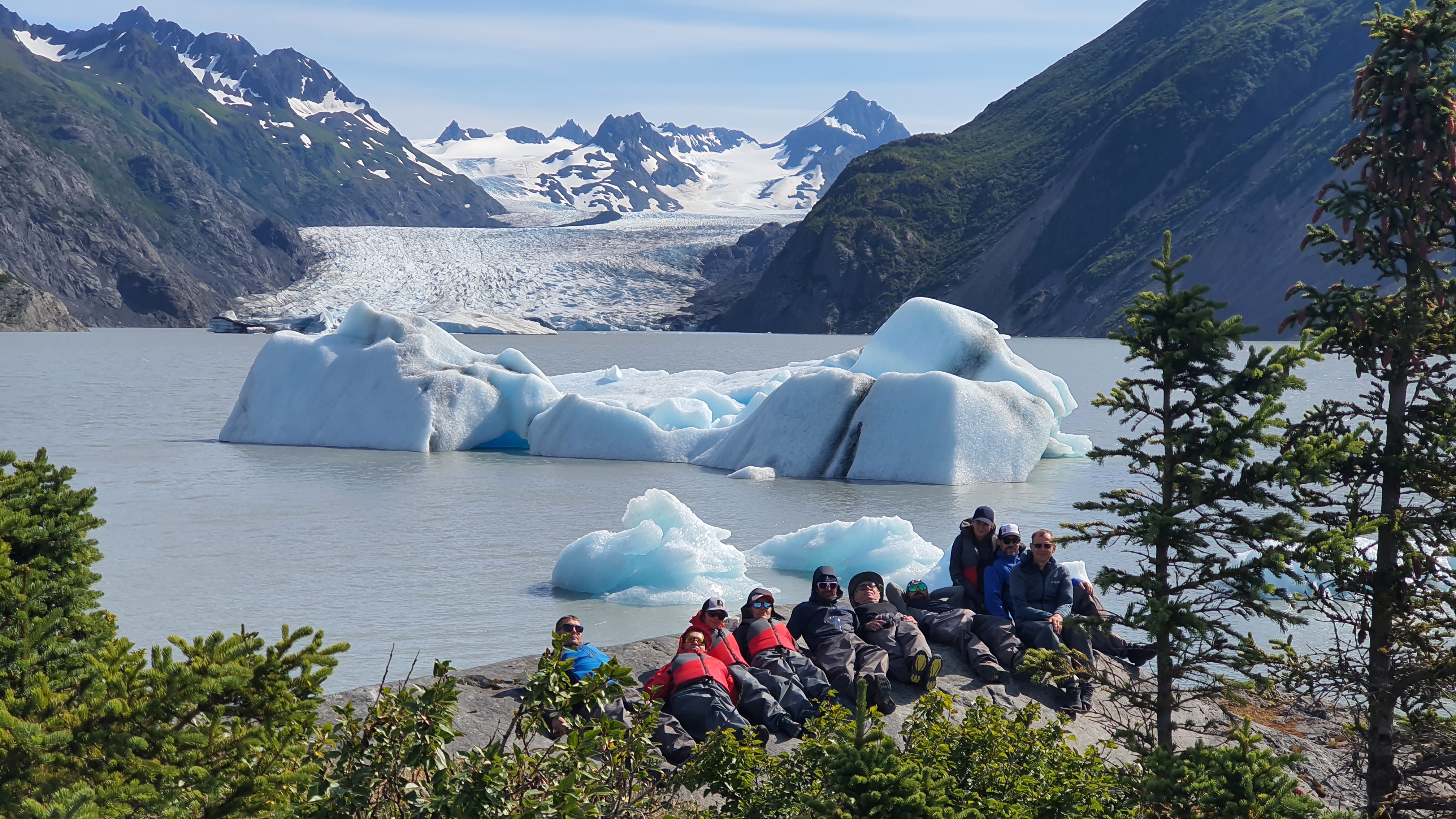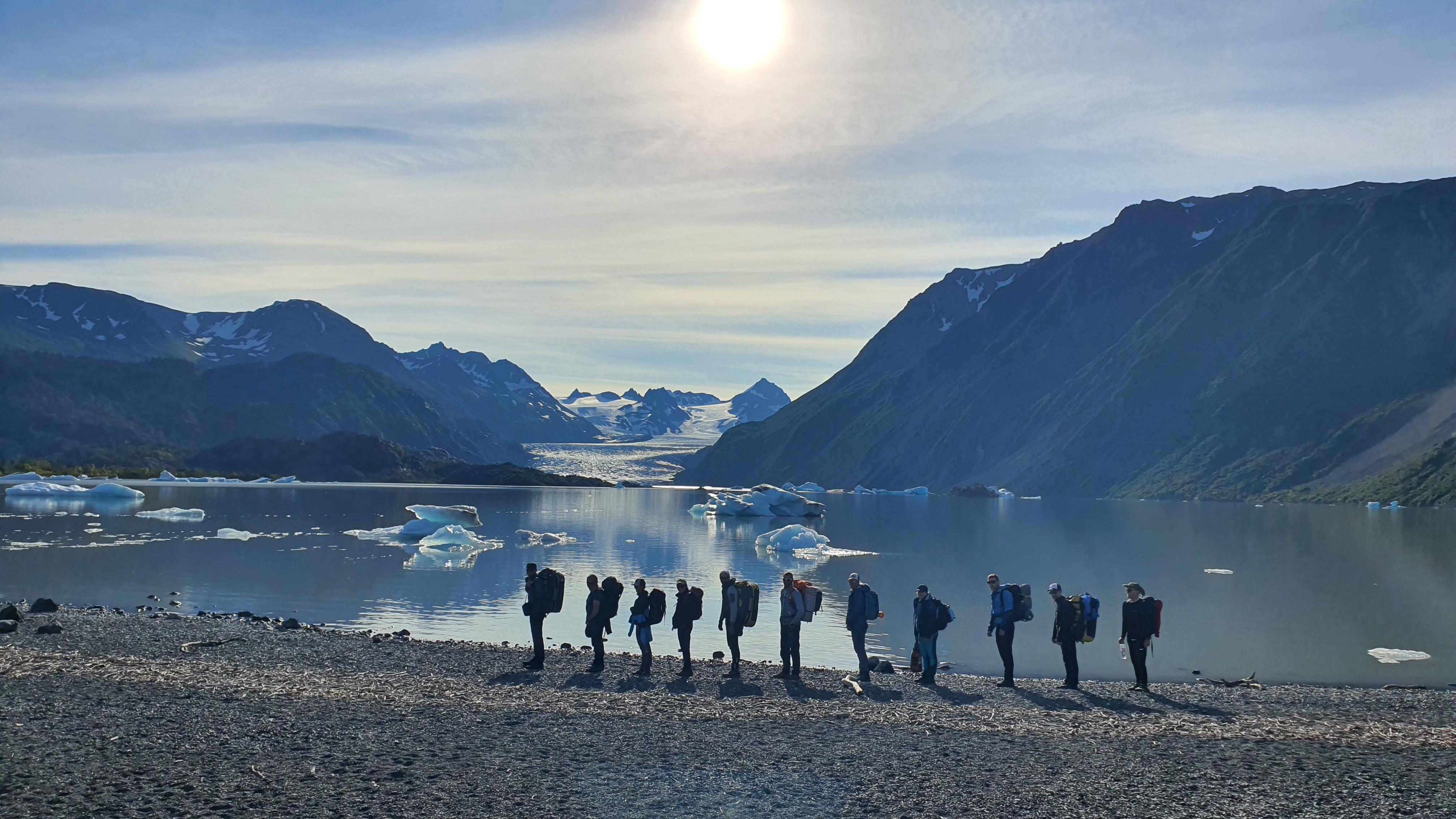 Vozimo mimo aktivnih ognjenikov, v ribiško mestece Homer. Prosto za kosilo in shopping, potem pa z gliserjem čez zaliv do parka Ketchamek, v katerega vstopimo z vso opremo na 1,5h treking in prespimo ob ledeniškem jezeru in ledeniku ki se izteka vanj. Nočitev kempiranje.