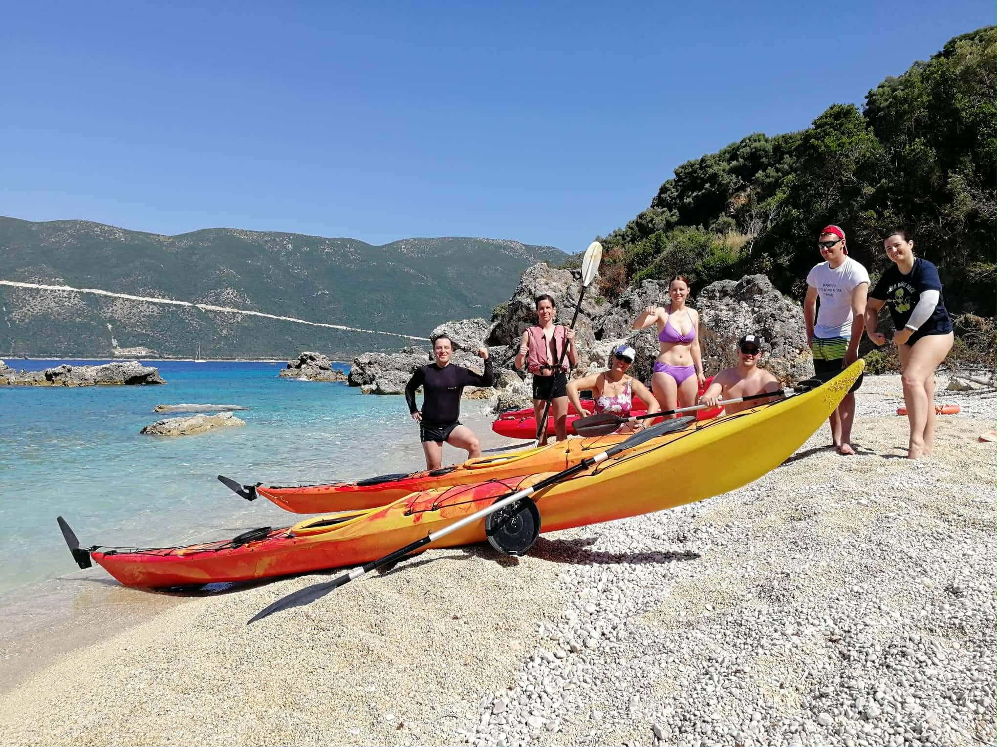 Tako bomo med drugim trekali, se vozili s kajaki do ene manj dostopnih plaž, jedli večerjo kar pri mesarju, se z ladjico s toboganom odpravili na celodnevni izlet do dveh najlepših plaž Grčije, raziskovali otok z najetim avtobusom in večerjali v restavraciji s #topshit razgledom.
